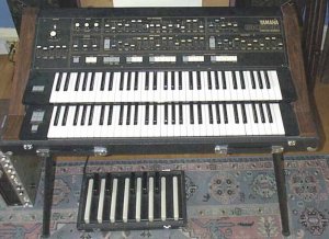 Yamaha's SK series are combo-keyboards with synthesizer, organ, and string sections. More a combo organ instrument than an Electone, this instrument had an organ form factor including two manuals and a small pedalboard. Interestingly, this organ used one of the early implementations of Yamaha's FM technology in a very limited form in its organ section.