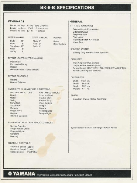 BK-6B Specifications